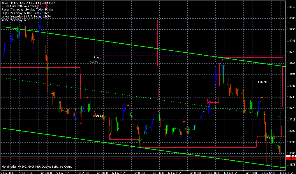 Das ursprüngliche System stammt vom FDAX. Dort funktiniert so etwas aber nur zu bestimten Phasen. Beim FDAX steige ich aber mit einer Limit-Order auf einem neuem Tageshigh/-low ein (damit meine ich, das ich nach dem FDAX Open eine Buy und Sell Limit Order mit festen Abstand zum Open aufgebe). Beim Cable warte ich erst einen sich andeutenden Trandwechsel ab und steige erst dann ein.Dieser Beitrag wurde bereits 1 mal editiert, zuletzt von „Eistee88“ ()