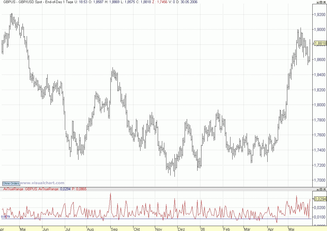 wenn man einen blick auf den langfristchart wirft, sieht man dass es immer wieder zu zeiten von niedriger vola (atr unter 80) kommt.