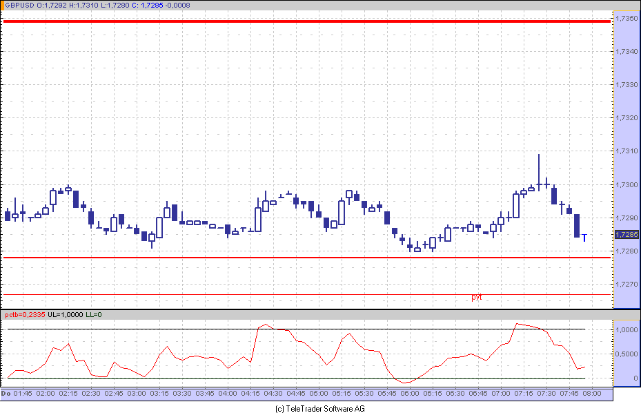 Wie goso schon sagte, bis 9 Uhr sind Abpraller sehr gut. Bin am oberen Ende der Range bei 7307 short gegangen und das Target bei 7287 wurde erreicht. Mal schauen, ob es sich lohnt, die Range auch long zu spielen. Long bei 7280 wär sinnvoll...