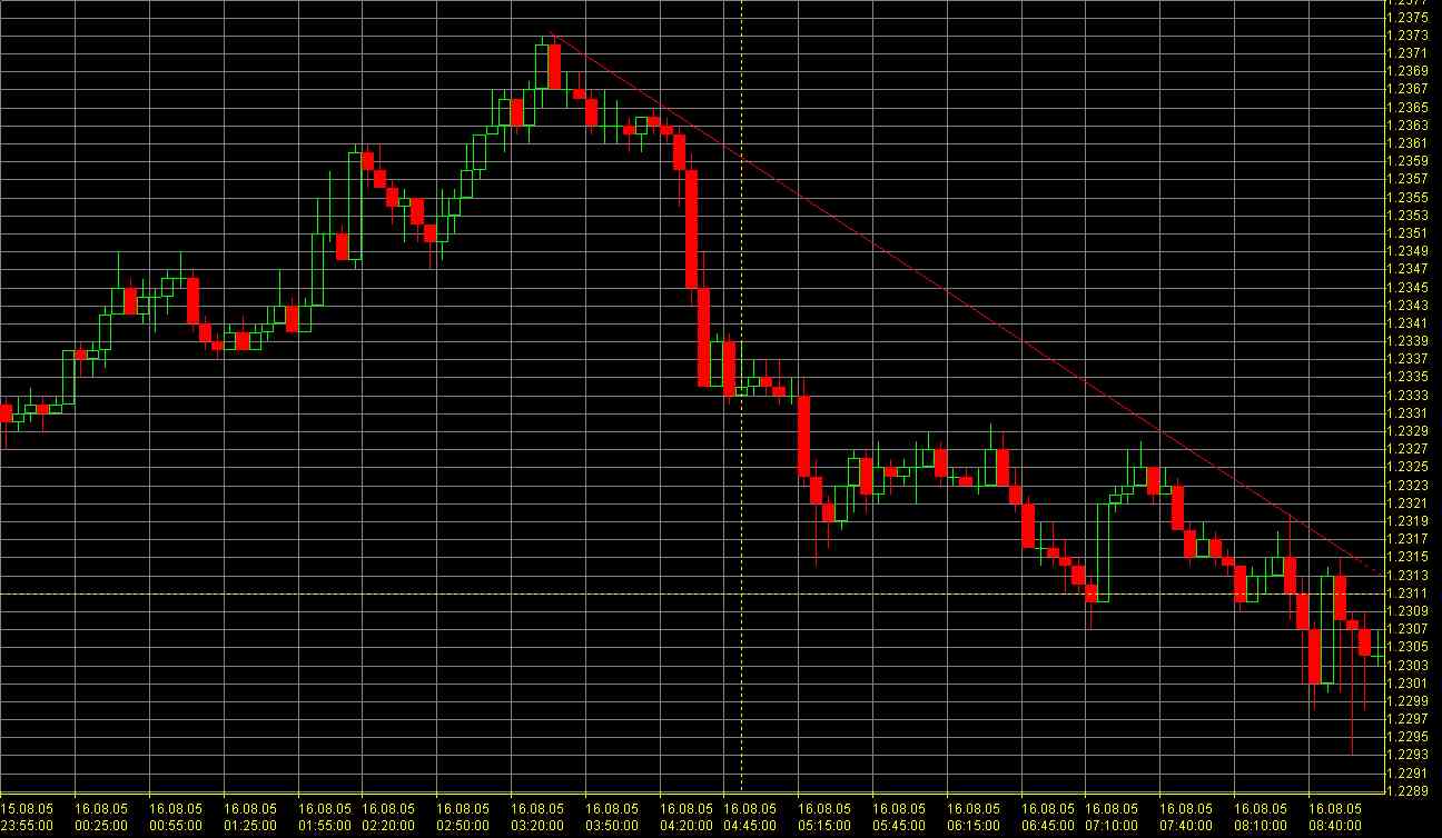 [13:11 EUR/USD: New Low Touched At 1.2295, Little Follow Through] New York, August 16th: Well, the stops below 1.2300 were triggered this morning, but the bids near 1.2290 have turned back the tide of the selling pressure thus far.