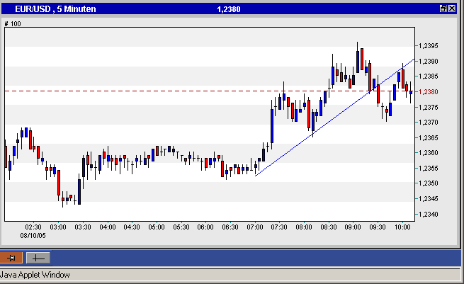 The Euro reached highs above 1.2400 on yesterday but failed to establish a support there so it declined towards 1.2330 and remained in the 1.2330-1.2380 range until the time of this writing. A new 1.2400 test may be seen today, so far the Eur remains bullish and ready to set fresh highs versus the US dollar. A fall below 1.2350 may cancel the Eur strength for a while and pull it lower, below 1.2300. The support in the 1.2350 area is formed by the trendline started at 1.2297 on 04 of August. More support levels emerge at 1.2330 and 1.2300. Resistance is seen at 1.2400 and 1.2450. Current quote is 1.2380 -