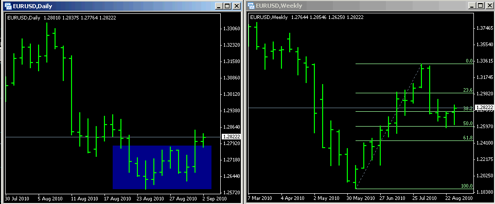 Natürlich immer mit dem Trend. Die Frage ist, wann für dich der aktuelle Trend beendet ist. Normalerweise würde man klassisch die Higher High, Lower Low Variante in Betracht ziehen, allerdings ist heute ein Großteil des Handels automatisiert und die Progamme sehen einen Bruch des 61,8er Retracement als "Failure Level". Sobald dieses Level gefallen ist, solltest du das Fib in die andere Richtung zeichnen. Außerdem muss das Fib nicht zwingend vom Low to High oder High to Low gezeichnet werden. Normalerweise gibt es nachdem der Preis das 1.23er oder 1.61er Extension Level erreicht hat einen Rücksetzer. Wenn der Preis aber weiter wandert solltest du das Fib vom letzten High zum aktuellen High zeichnen bzw. Low to Low. Gerade in einem starken Trend oder nach einen Konsolidierungsphase mit einer engen Range siehst du das 50er oder 61er Retracement nicht mehr ,wenn du dein Fib klassisch von Low to High oder High to Low ziehst. Im Chart siehst du wie das Fib von High to High eingezeichnet ist. Der Preis hatte sich im 50er Fib Bereich stabilisiert. Dann gab es einen kurzen Dip unter das 61er Level. Wie gesagt, das reicht für die Programme auf Short Modus zu switchen. Nach dem Bruch zieht man also von Low to High. Und Überraschung: Am 50er Level sitzen Short Orders. Das der Markt mit ECB News und den vielen US News heute dann nicht mehr sehr technisch ist, ist auch nicht verwunderlich- in einen Markt der emotionallen Reaktionen folgt ,funktionieren Fibs nicht.