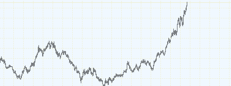 Da gibt es keine normale Trendbewegung mehr, da jede Konsolidierung fehlt. wenn man sich vorstellt, wenn das Ding nur 50 % konsolidieren wird, das der bis auf