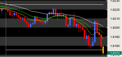 Ein bestimmtes Ziel habe ich nicht. S2 (pivot) liegt bei 1.9144 die nächste Unterstützung liegt bei S3 1.9106 bzw. 1.9100 (Tagestief 14.3.). Wenn der jetzt bei S2 abprallt ist da bis auf ein paar pips nicht viel zu holen. Von daher lass ich ihn laufen und wenn es sein muss mich ausstoppen +/- 0. Zumindest kann die Posi nicht mehr ins Minus laufen.