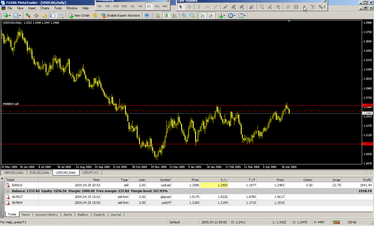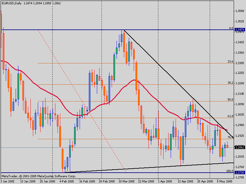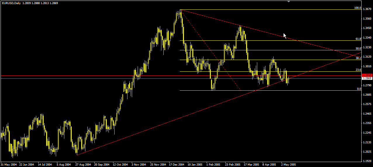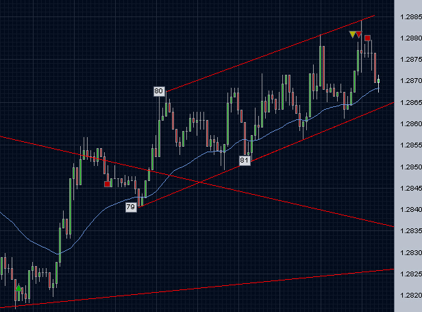 Den Trade ging ich ein, da EURUSD im blau markierten Bereich gute Unterstützung fand, Entry war 1,2805.