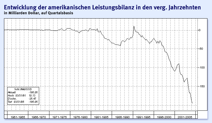 Die Defizite Amerikas können langfristig nur durch „qualitativ hochwertige” Geldströme gesichert werden. Das wären physische Investitionen oder der Kauf von Aktien. Beides ist im Moment aber nicht nur nicht zu beobachten, sondern diese beiden Faktoren sind sogar noch negativ.