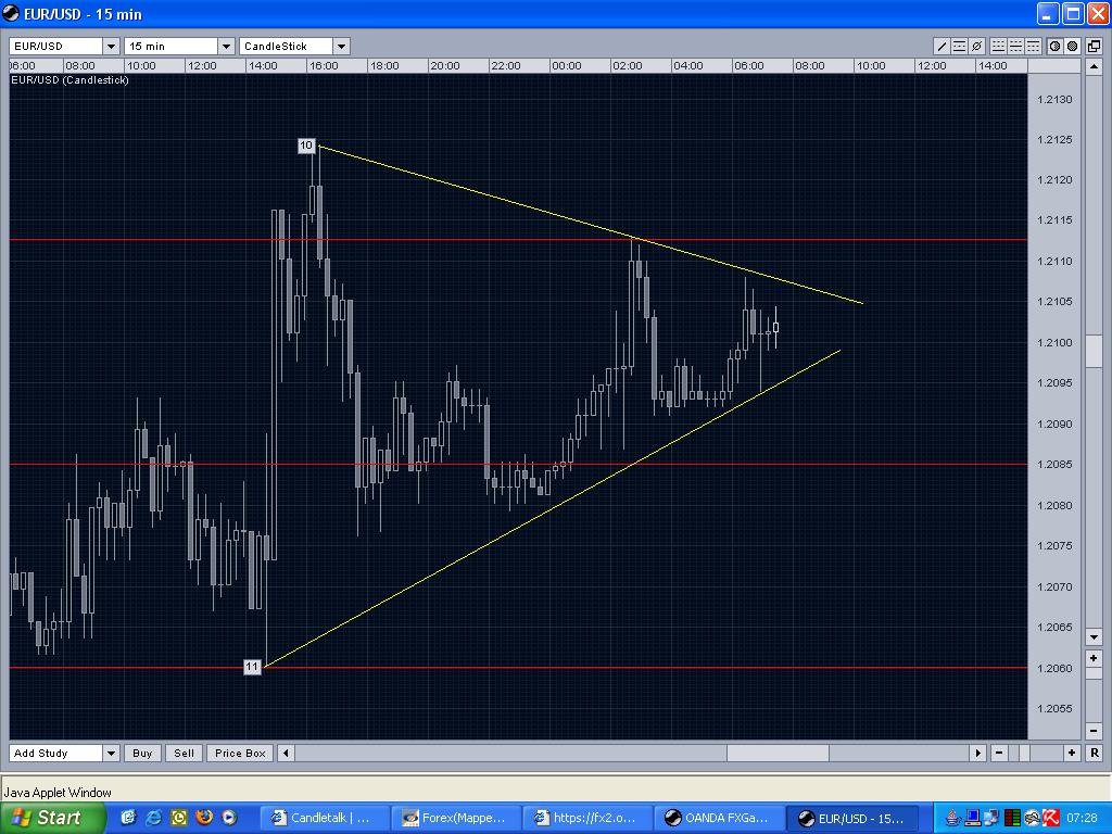 denn die vorhersagekraft eines dreiecks nimmt ab, wenn der kurs die formation zu mehr als 2/3 ausgefüllt hat. (zumindest gilt dies bei aktien)