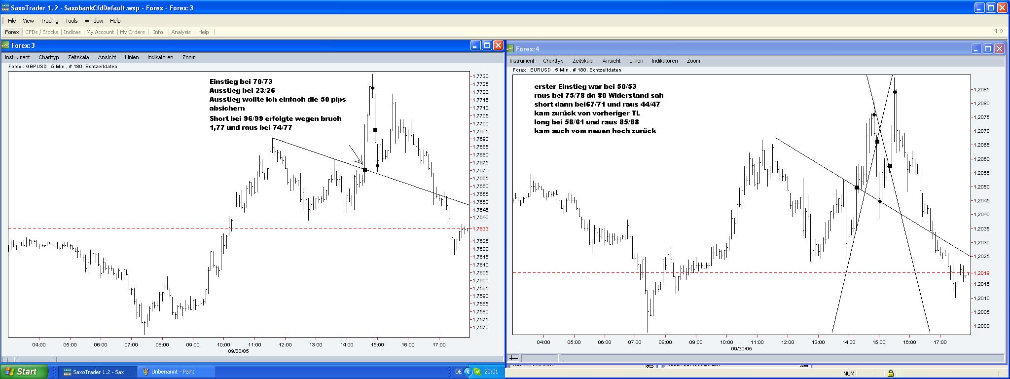 Charts aus Tradesignal Enterprise (weiß) +2 Pips ggü. Sell-Kurs der FXCM-Charts (schwarz), letztere haben 6h Zeitverschiebung, MetaTrader-Charts +/-0 (schwarz).