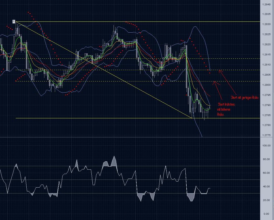 Ich komm im chf nicht rein würde gerne bei 1.2807 (c.a. 40% fibonacci retracment) short gehen. Aber es heißt ja auch wer wartet wird belohnt vielleicht klappts ja doch noch...