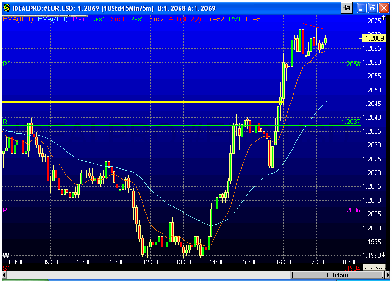 Nein wir sind im EUR/USD bei R1 genauer R1 Punkt liegt bei 1.2059
