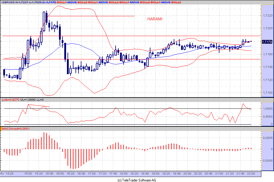 den richtigen zeitpunkt der trendumkehr genauer zu bestimmen,ist dann ein eigenes thema.da habe ich schon besondere merkmale,z.b. ein harami der aus den bändern auftritt.es gibt aber auch andere möglichkeiten.