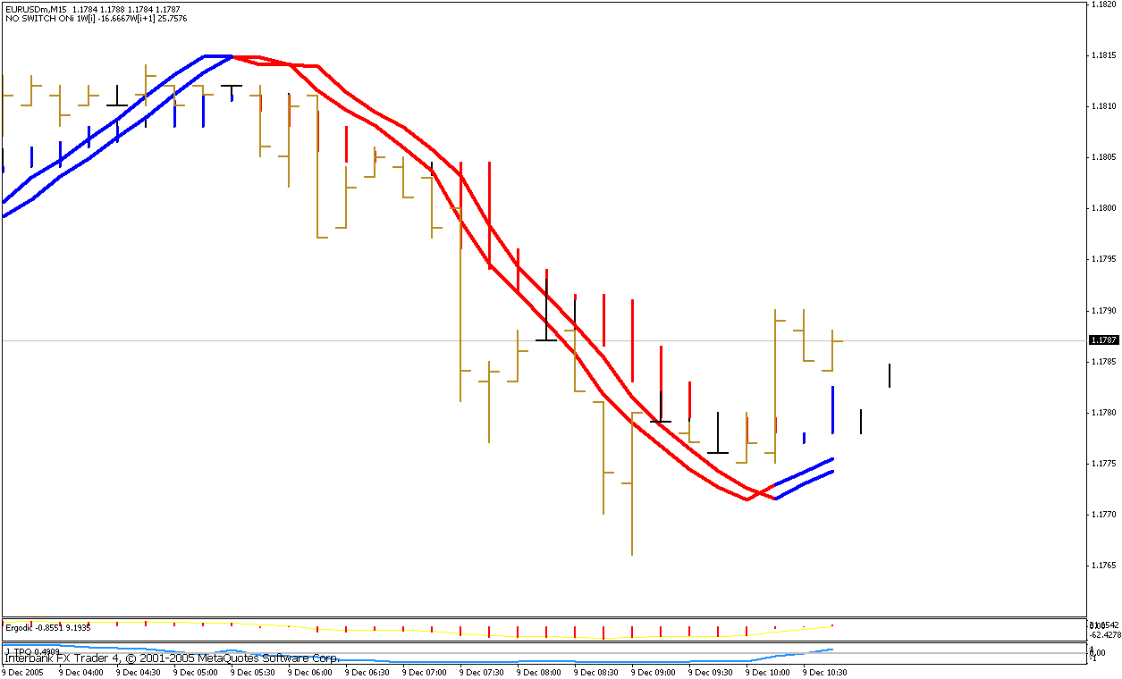 Kurzum die Entries vom Trendmanager sind auf 15 min. Charts durchaus zu gebrauchen, aber die Exits sind wohl nicht die besten. Grundsätzlich ist klar das die meisten Methoden am besten funktionieren wenn sich nach dem Entry Trends etablieren. Anliegend zwei Charts, einmal der Trendmanager und dann mit der Voilamethode, wobei die Kursbalken hier nach dem CCI 34 eingefärbt sind - Geld für CCI über Null, sonst rot.
