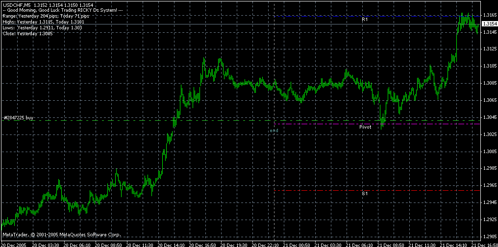 Tja hatte heute den richtigen Riecher. Long im USD/CHF am Pivot und Short Euro am Pivot und dann Rechner aus. Ist oft so, dass nach einem Trendtag wie gestern eine Korrektur zum Pivot kommt und dann der Trend wieder aufgenommen wird. Bin jetzt nach Hause und sehe das mein Long und Short jeweils über 80 Pips im Plus sind