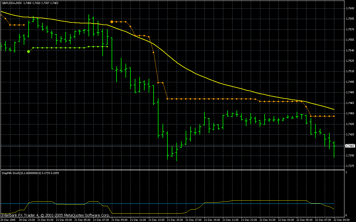 Eine Alternative zum ParSar wäre Voila - siehe Chart. Sie ist aber ruhiger als der ParSar in der Standardeinstellung. Im Metatraderthread habe ich einen Link gepostet wo du die Voila runterladen kannst, einfach mal gucken, entweder es passt oder halt nicht *g