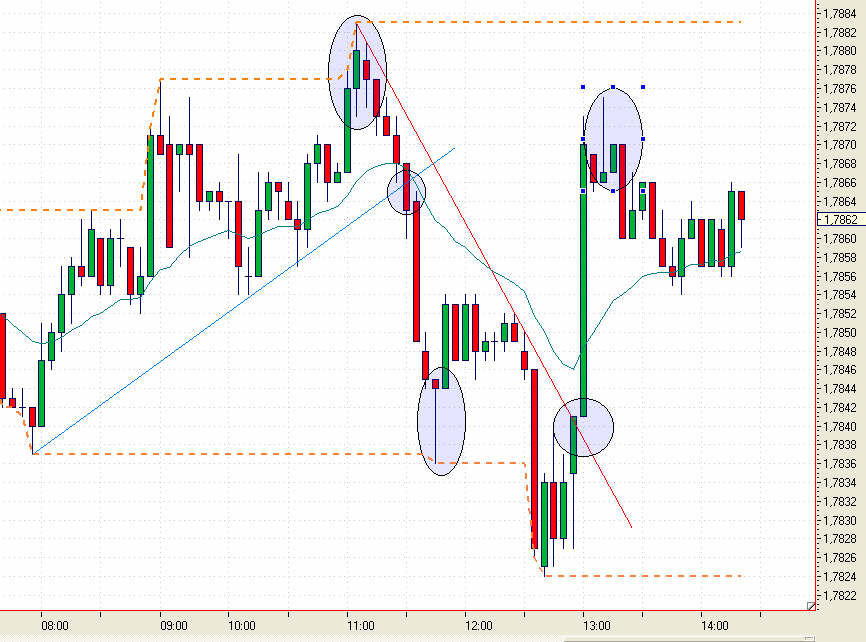 Wenn man nur im voraus ungefähr wüßte, wann Trendlinien so toll funktionieren wie heute, und wann nicht. Solange ich da kein einigermaßenes Kriterium für gefunden habe, spielen sie für mein Traden nur eine nachrangige Bedeutung. Aber vielleicht hast Du ja dafür eine Idee.