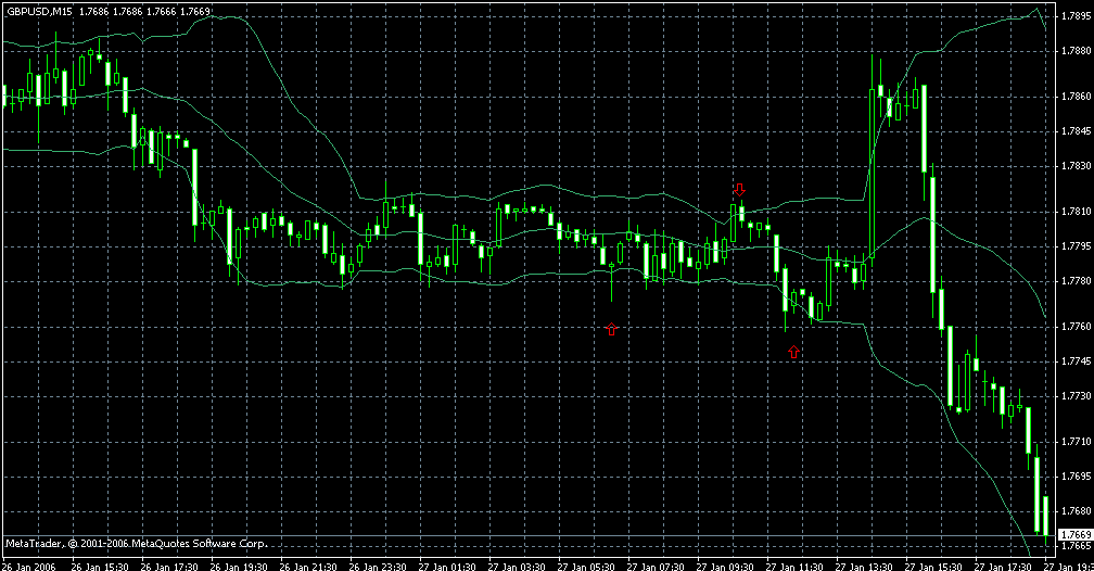 Alle drei Kerzen bzw. Kerzenformationen weisen darauf hin, daß es sich um einen False Breakout handelt mit Kursziel BBD bzw. dem gegenüberligenden BB. Da wir uns in einer ruhigen Seitwärtsbewegung befanden und offensichtlich alle auf den US-BIP warteten, richtete sich sogar der flippige Cabel nach den Kerzen am BB.