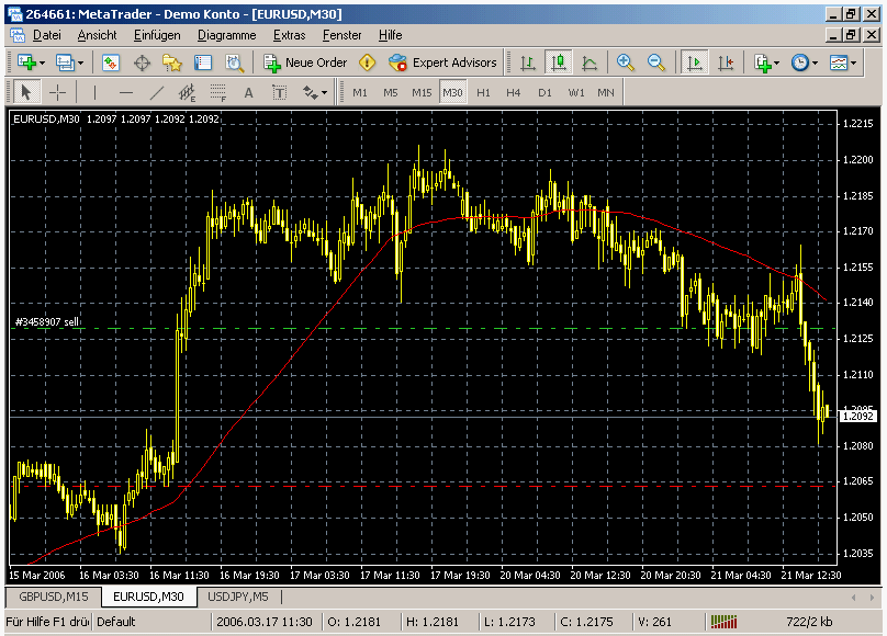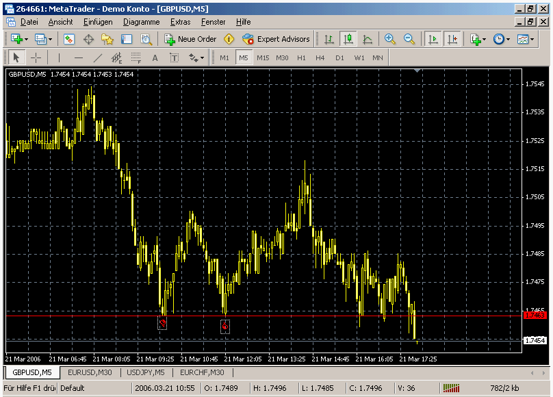 Heute sind es erst 5 Trades, aber das kann ja noch kommen. SL ist im Normalfall 13 Pips, Profit im Durchschnitt auch so in dem Bereich, tendenziell ein bisschen mehr, aber ich mache im Kurzfristbereich durchaus auch Trades mit einem CRV von 1:1, nach über 20000 Intradaytrades weiss ich recht gut wann ich was machen muss. ;)