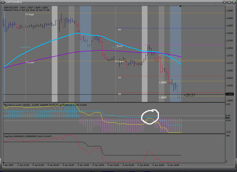 das 34er brachte mir heute 11 pips. um 9.30 uhr auf entry ausgestoppt, aber kurz darauf wieder eröffnet. du hast dann wohl beim überkreuzen der ma's glattgestellt. ich habe befürchtet, dass es nur eine temporäre erholung sein könnte und habe die ganzen 34 pips mit nach unten genommen. short ging dann ja problemlos, wobei ich ein paar pips früher raus bin wegen des pivots.