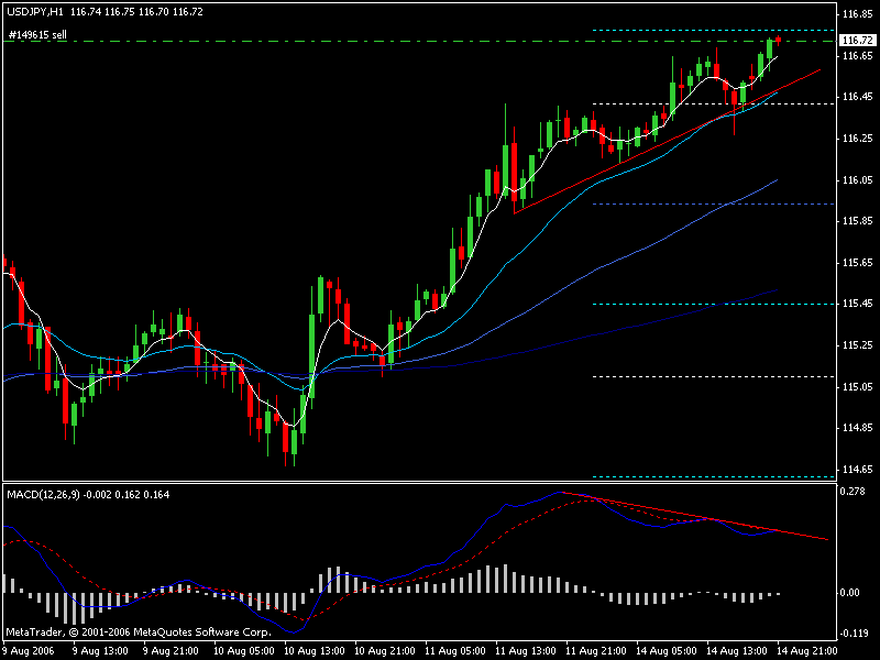 Im USDJPY zeichnet sich eine bearishe Divergenz ab. Ausserdem ist die 116.70 eine wichtige Marke aus dem daily chart... Mal schauen, ob der Short klappt!