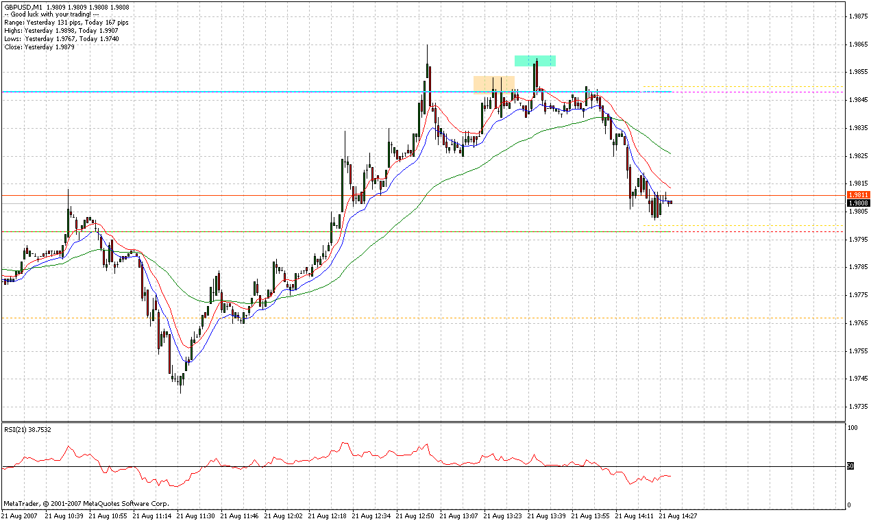 Irgendwann haben wir alle 10Pip ein potentielle Umkehrmarke (00 / 20 / 35 / 50 / 65 / 80 / 00 +Pivot und S1 / S2 / S3 / R1 / R2 / R3). Dann lässt sich bald kein Trade mehr eingehen, da immer irgendwo eine Linie im Weg ist. Dies soll allerdings die Beobachtung von Wolli keinesfalls schmälern