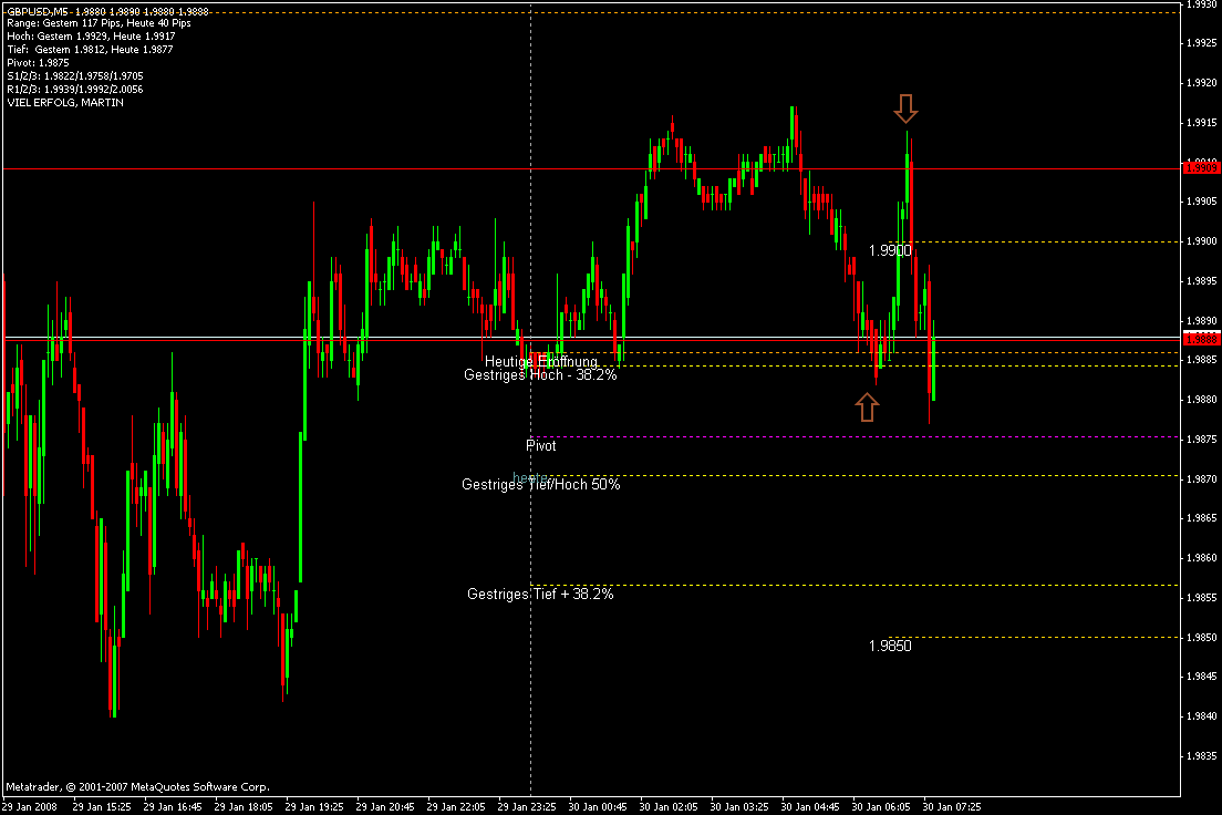 Habe heute mit einem Klassiker versucht, mich wieder ins Spiel zu bringen: buy limit am Asientief (@9885) SL bei 9863, TP Asienhoch 9815, dann Frühstück. Nach Wiederkehr habe ich gesehen, dass ich eingestoppt war und es relativ zügig Richtung TP ging. SL auf Einstand, dann 9895 nachgezogen. Knapp vor dem TP stockte der Kurs, gefühlsmäßig ging ich von einem Rücksetzer aus, so habe ich manuell bei 9911 geschlossen. War i.O., wie sich nachträglich herausstellt. Gefühl für Marktbewegungen scheint da zu sein. Wenn das Ganze auch nur mit ca. 1/6 der üblichen Positionsgröße ablief, so überwiegt die Freude über einen gelungenen Trade doch der "Trauer" über die möglich gewesenen Euros. Werde diszipliniert die gesamte restliche Woche mit der reduzierten Positionsgröße weitermachen und sehen, was dabei rauskommt.