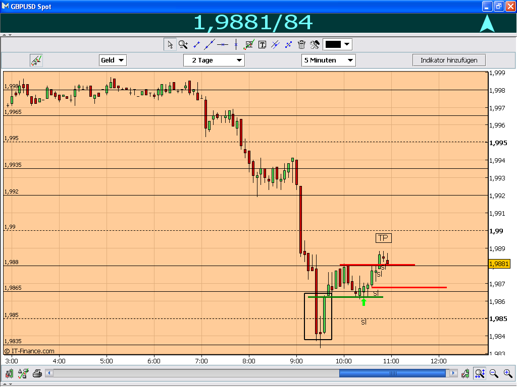 Wie bist du in den Trade rein? Antizyklisch bei Erreichen des Pivots oder erst als der Kurs am Pivot wieder nach unten drehte? -