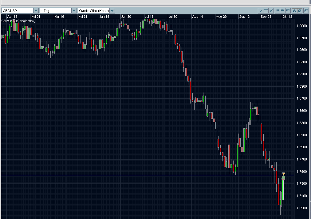 Das sind Bewegungen, die man als Trader braucht und liebt. Seit 11.30 Uhr ist der Cable um über 400 Pips gefallen.
