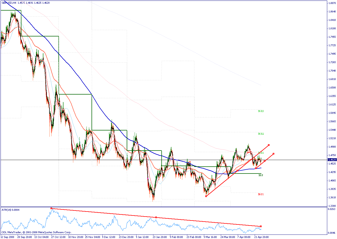 Das Low im Cable war 1.45, damit zwischenzeitlich 75 Pips im Plus, aber das Ziel auch um 75 Pips verfehlt. Der Ausstieg war dann semioptimal. Im Moment oszilliert der Cable und eine eindeutige Richtung ist schwierig auszumachen. Im 4 H Chart sieht man, das wir nach dem starken Abwärtsfall in eine Konsolidierungsphase eingetreten sind. Wenig überraschend hat gleichzeitig die Vola nachgelassen. Ich hoffe die nächsten Tage gibt ein klarere Richtung vor, Higher Highs und Lower Lows sind nicht gerade hilfreich.