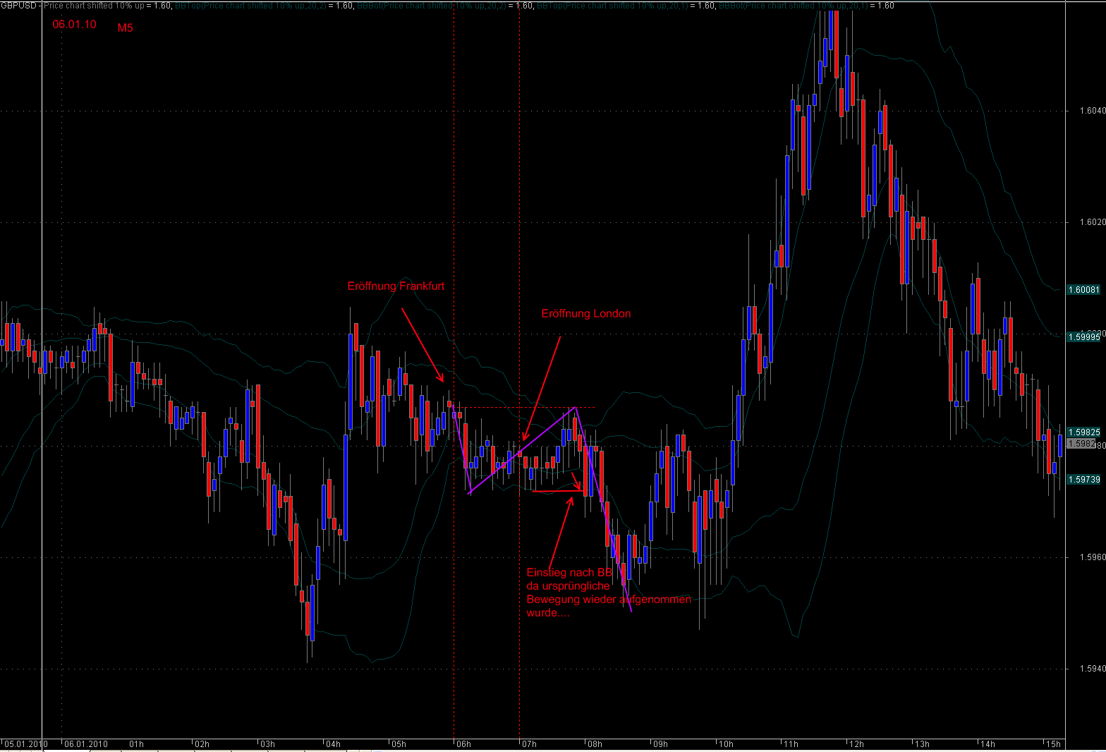 Ich hab mal die Strategie angehangen (aus dem Currency Trader Magazin). Der Big Ben erscheint nicht immer in der klassischen Form. Man sollte die Marktbedingungen mit betrachten. Die Leute in "F/M" waren sich einig und es ging Richtung Norden. Als dann UK Time war und der Kurs nach dem Rücksetzer auf die ~6000 wieder gen Norden ging, bin ich @21 Long.