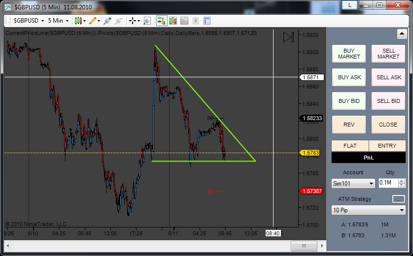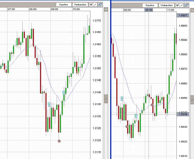 Mit Umkehrkerze meine ich diejenige, die in einem Trend - oder in einer Trendkorrektur - kein ll oder hh zur vorhergehende Kerze hat. Diese "Umkehrkerze" muss bestätigt werden. D.h. ich setze eine Limitorder, die mindestens 2 Pips höher bzw. tiefer liegt. Meist reichen im cable 2 Pips. Es gibt aber auch Tage, an denen 3 oder 4 Pips besser sind. Um dies zu erkennen, schaue ich, wie der Rhythmus in den vorhergehenden Stunden.archie schrieb: