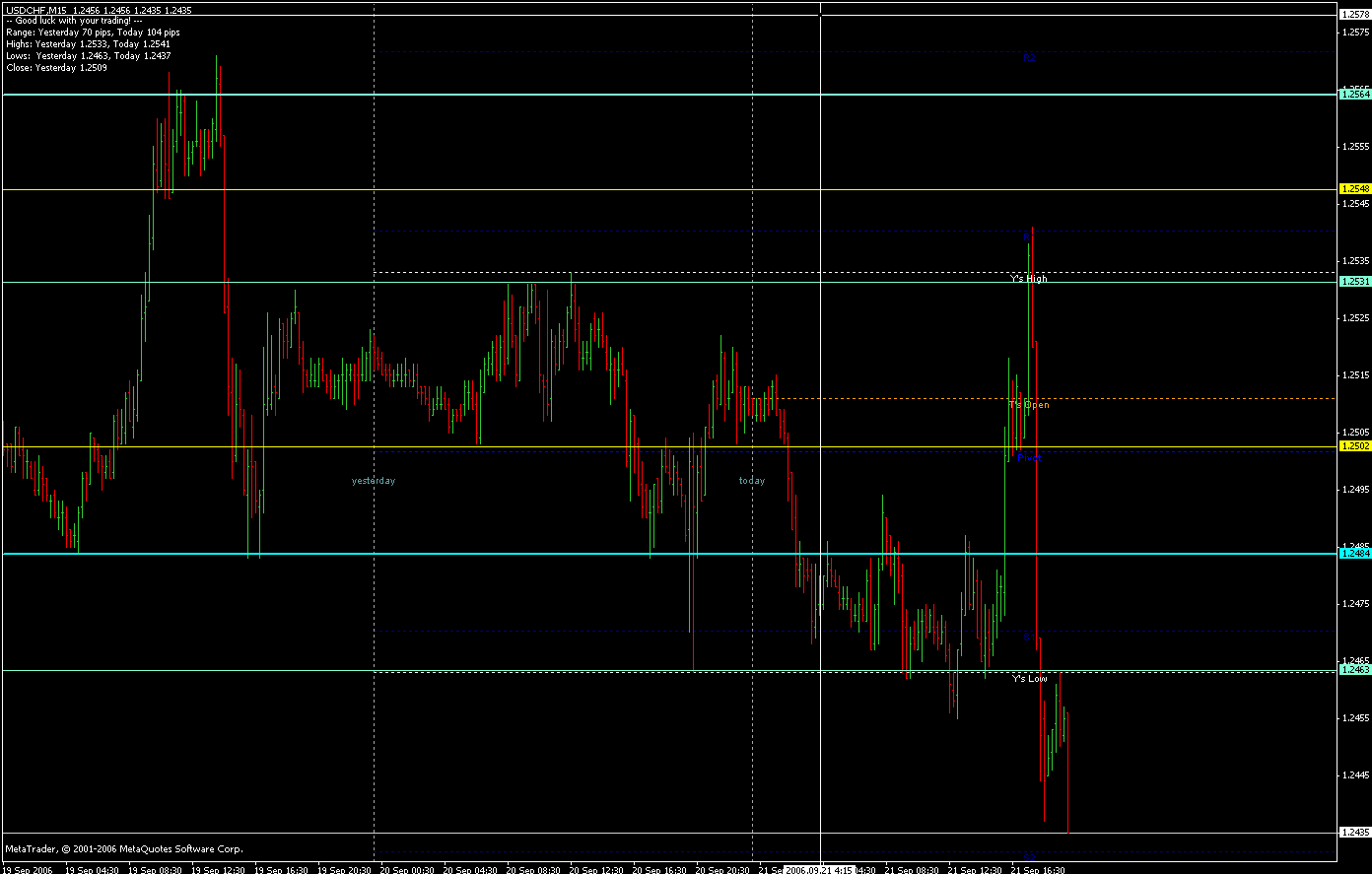 ich hatte heute morgen eine order im swissy bei 2530 angelegt (1h chart). der r1 lag ungefähr bei 40. ist er auch genau hingegangen. Sl war 2548. ziel war bei mir zu der 2463 hin, weil ich dort eine wichtige linie hatte (h1 chart) und zudem befand sich dort das yesterdays low. der kurs ist anch dem abpraller sogar noch fast zum s1 gegangen.