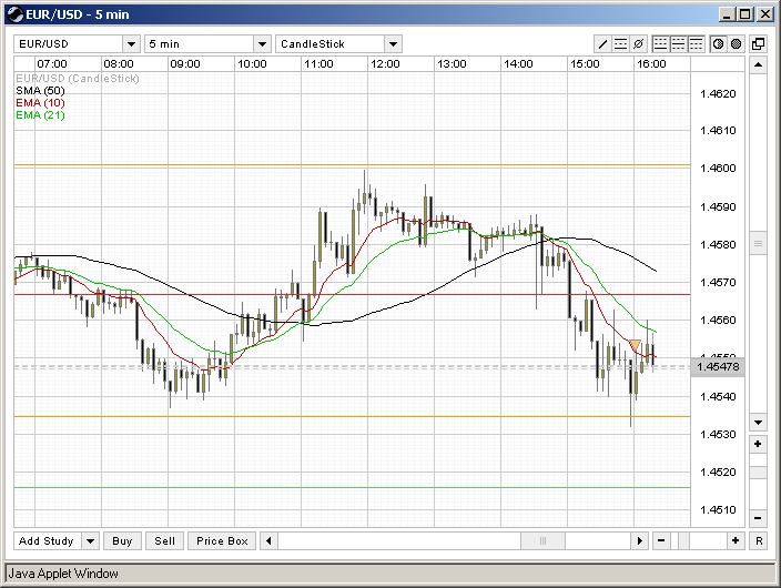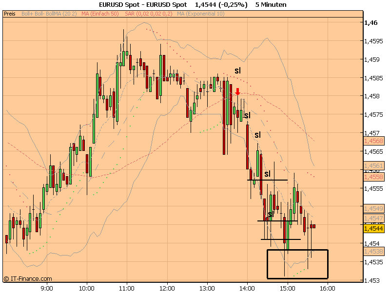 Bin short bei 1,4551 nach Break des lokalen Tiefs auf Stundenbasis.