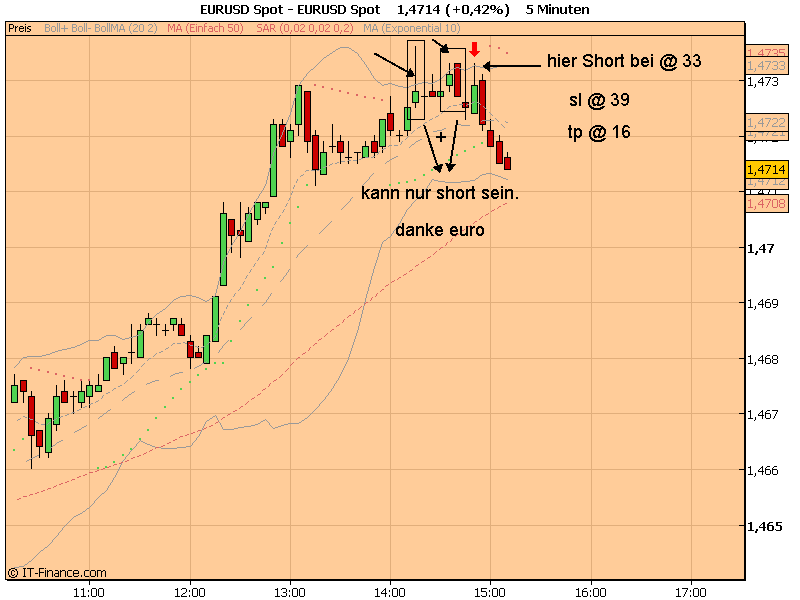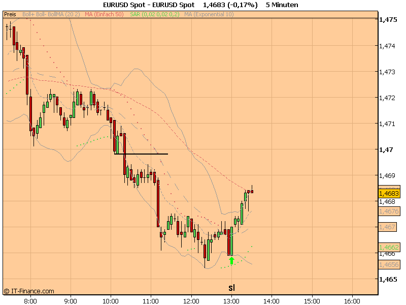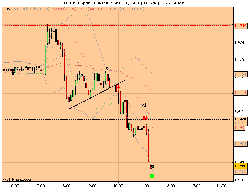 Pass gut auf dein sl auf,solang er noch unter 1.4709/11 ist muss du sehr vorsichtig sein.Der Euro hat für heute nach unten noch ein Ziel offen gelassen,und zwar bei 1.4633, den kann er sich holen muss er aber nicht.DanielR schrieb: