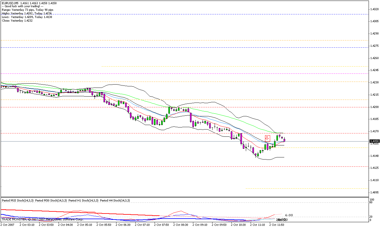 nächster trade: halbe posigröße short bei 1.4058, 100% TP bei 1,4053 gerade eben erreicht. 1min chart. flatI go for it!