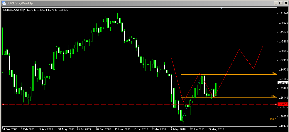 Ist reine Interpretation, der doch recht zügige Upmove hat den fast ebenso zügigen vorangegangenen Downmove gleichermaßen wieder gut gemacht. Was ich mir jetzt "vorstelle" ist ein 123 oder ähnliches.