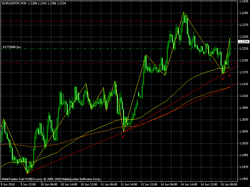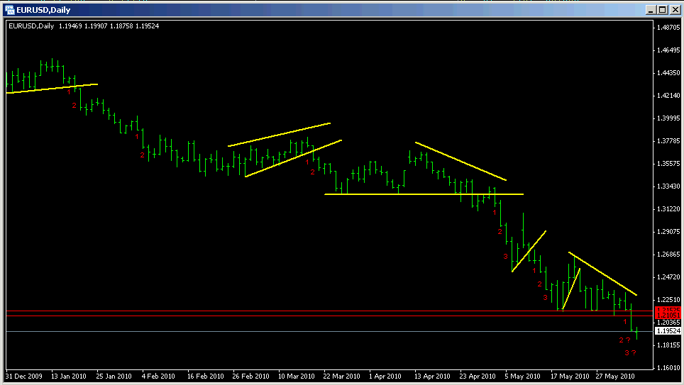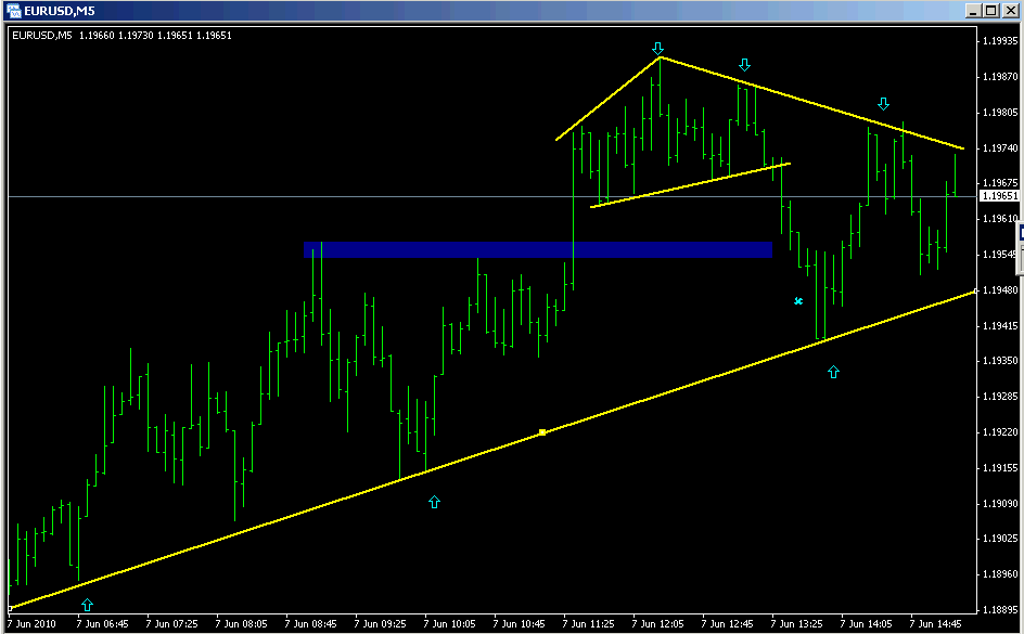 Solche Bedenken hatte ich auch, hab mich dann trotzdem für so einen engen Slide entschieden, da mit überschreiten des Hochs auch wieder der Trend bestätigt worden wäre. Außerdem hatten wir vorher eine Momentumabflachung im 5er, die sich durch ein Ausweiten einer nach oben gerichteten Range bemerkbar machte. Als die Range dann nach unten durchbrochen wurde, hab ich das als erstes Zeichen einer Schwäche interpretiert. Der Preis lief dann noch die Trendlinie an, prallte ab und stoppte dann an der oberen kleineren Diagonalen, hier habe ich einen Trendlinienbruch vorweggenommen. Zugegeben vielleicht etwas fishy, hab mich aber vom Daily beeinflussen lassen. Naja, vielleicht wird er noch, der Trend ist ja noch nicht durch