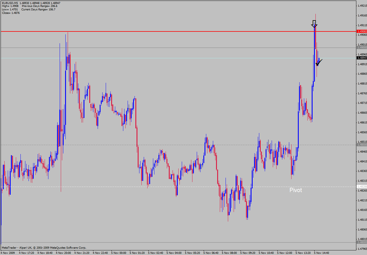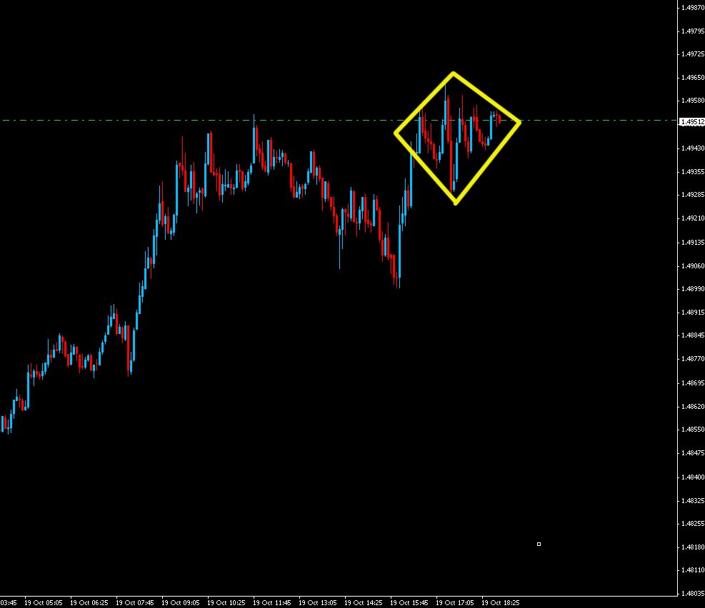 Der Euro lief in einer sehr direkten Bewegung in Richtung SP. Da knapp 10 Pips höher auch noch ein charttechnischer Widerstand in Form eines lokalen Hochs von gestern lag, war es für mich wahrscheinlich, dass der Euro hier zumindest kurzfristig eine Pause einlegen könnte.