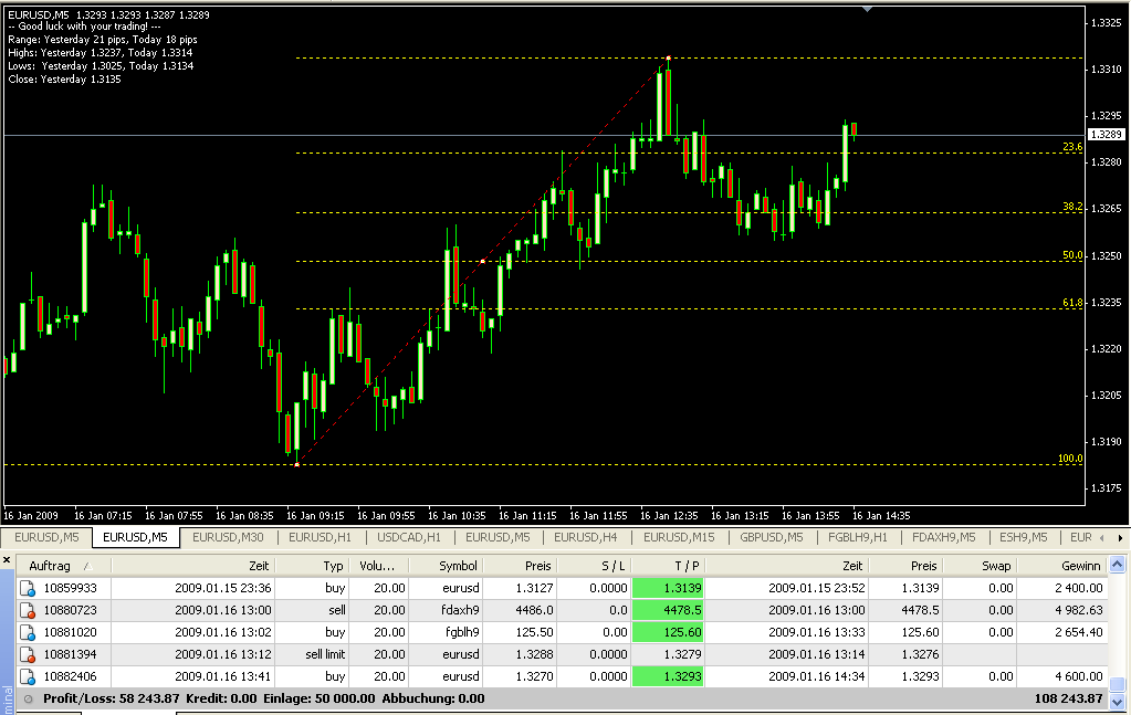 50% zu ca. 14 Pips