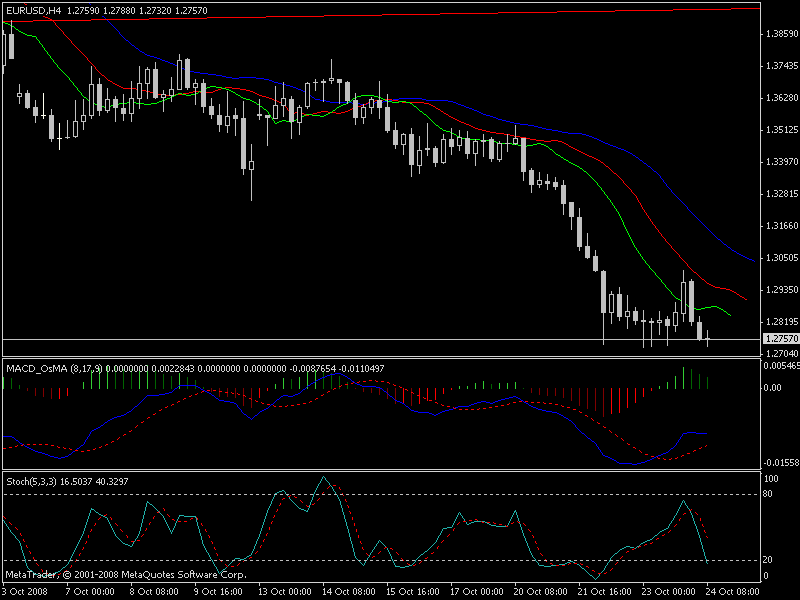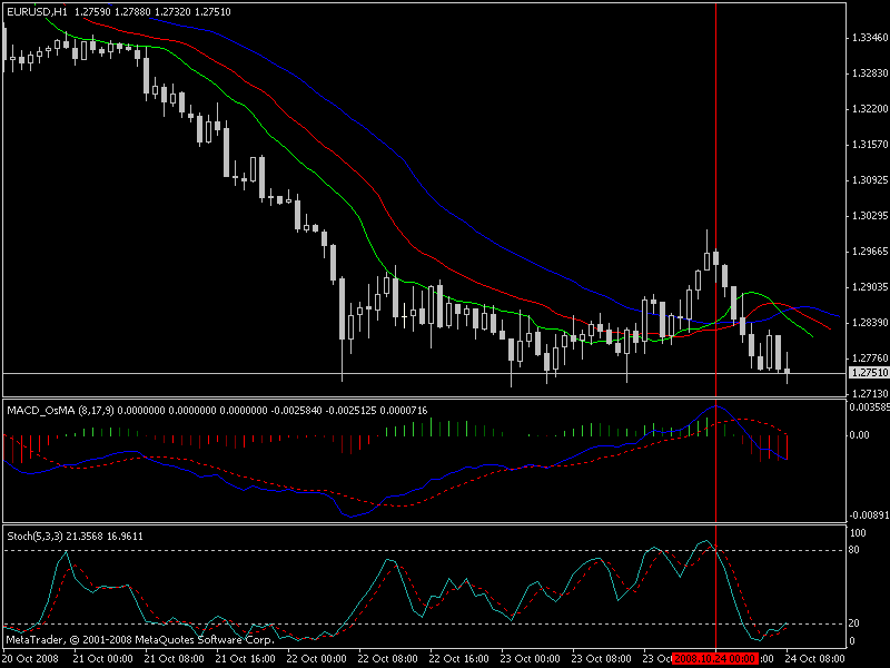 Ein Dark Cloud Cover aus dem Lehrbuch im H1, plus klar überkaufter Stoch, plus abfallender OsMA - und der Kurs marschiert ~200 pips nach unten: