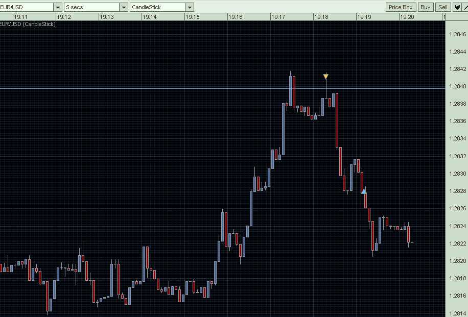 Im Euro kann man trotz der großen Bewegungen relativ kleine Stops (im 1min) setzen und dann geht die Entscheidung ob richtig oder falsch ziemlich schnell.