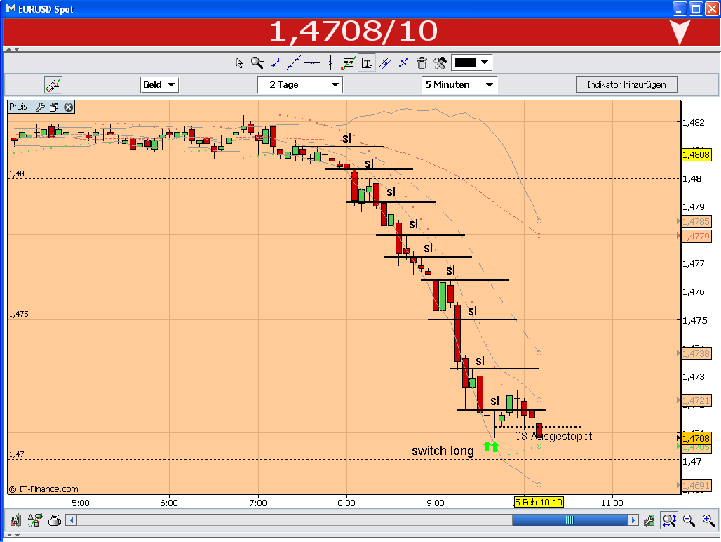 L am W, 2TPs als Exit. Danach S wieder mit 1xTP und 1xSL. Dann wieder L bis 00 und Exit mit 1TP. Beim 2. Trade hab ich gemerkt das ich den richtigen Aussstiegszeitpunkt verpasst hatte, wollte dann aber mit Gewalt drinbleiben. Naja das SL gab mir nicht Recht...das Feeling was ich hatte wo ich mehrere Stunden am Tag dabei war hab ich noch nicht wieder.