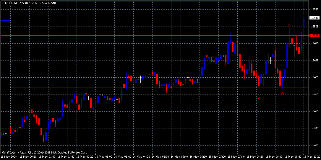 EURUSD hält sich seit 3:30 über dem Pivot, testet Pivot, testet 1,5500, wieder zurück an den Pivot, kurzer Blick auf EURGBP, auch da zeichnet sich eine Bodenbildung des Downtrends ab, was bleibt da mehr zu tun als Abzudrücken, gut in den Trade gekommen, Fill zu 70, SL ein paar Pips unter dem Tief des ersten Pivottests im europäischen Handel, somit bei 62, macht 8 Pips SL, TP bei 00 eingeben, zurücklehnen, entspannen, Zeitung lesen und darauf warten, dass der Trade mit einem CRV von 3,75 geschlossen wird. -