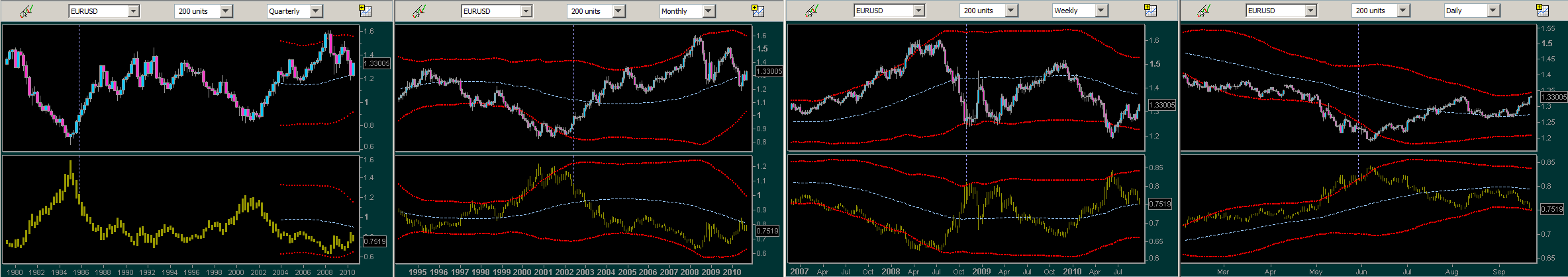 Geschichte wiederholt sich ja bekanntermaßen. Wobei die Sache ja diesmal noch relativ gemütlich im Vergleich zu 2008 abgelaufen ist. Da hat der Euro gerade mal neun Handelstage gebraucht um von 1.27 auf 1.47 zu steigen. Bis 1.35 ist der Weg noch frei, dann kommt das 50% Fib level von 2009 Hochs zu den 2010 Tiefs. Viel wird sicherlich davon abhängen wieviel Dollar noch in USD/CHF und USD/JPY auf den Markt geschmissen wird. USD/CHF hat heute seine 2009 Tiefs gebrochen und die BOJ scheint im Moment wieder die Füße still zu halten. Man will ja nicht wie die SNB enden, die das Interventionsspiel im EUR/CHF probiert hat und dabei 14 Milliarden dem Forex Markt "gespendet" hat. Also ich finde es schon mutig im Moment Dollar long zu sein, außerhalb des intraday Tradings. Wie heißt es so schön: A trend is a trend until it fails.Dobi schrieb: