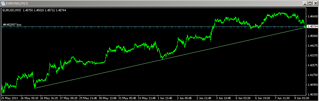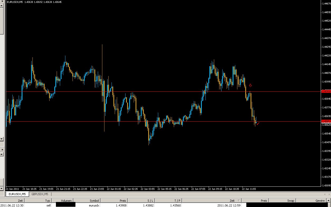 Dort gibt es einen sogannten floatingspread, d.h. bei diesem Account Typ (LF Boom - wo es die 200USD gibt) bewegt sich der Spread im Euro fließend zwischen 2 und ca. 3 Pips (springt in Bruchteilen dazwischen hin und her). Das SL hatte ich unabhängig vom Spread gewählt, "rein zufällig" - um nicht unter Umständen mit Slippage ins Minus zu rutschen.