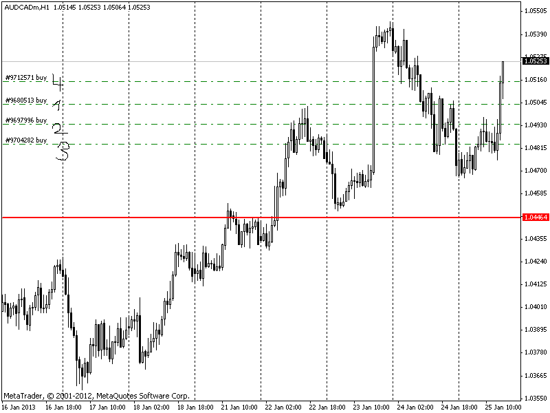 waren: 1.3367 1.3271. Einstieg wäre über die 1.3347 gewesen, weil wir aber im 4 H Chart eine Patt Kerze am 23.01.13 um 12:00 Uhr hatten, war
