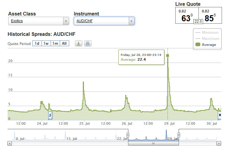 Der zweite Wert war AUD/CHF, wird bei Oanda als Exot geführt.