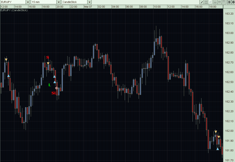 Anbei mal der 15min Chart vom Euro Yen, da siehst du auch, das ich Fehler mache, ganz normal. :) Ich habe zwei Möglichkeiten: ich stelle hier keine Grafiken rein ... oder ... ich stelle sie rein und vielleicht lenken sie die Aufmerksamkeit einiger auf Dinge, die sie vorher nicht so sehr beachtet haben.