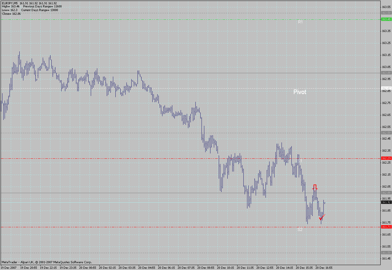 Ich wartete bis der EURJPY an sein SP heran, was zugleich ein W war. Dort stagnierte er ersmal. Der USD/JPY kam ebenfalls am W an. Da der Euro unter seinem SP hing, ging ich im EURJPY short. Bei 77 gecovert. -