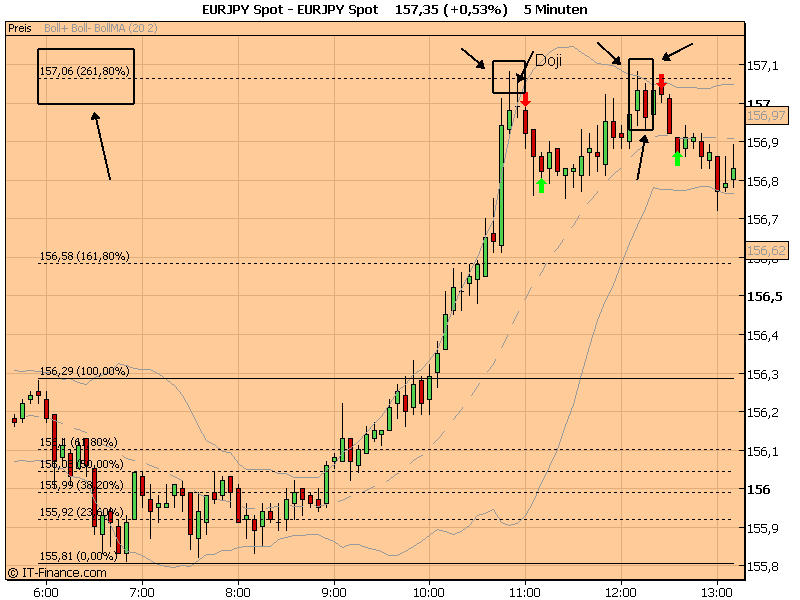 Um 9.15 Uhr bin ich im EURJPY short gegangen. Der Euro lang unter seinem Widerstand und der Yen machte Anzeichen wieder nach unten zu drehen.