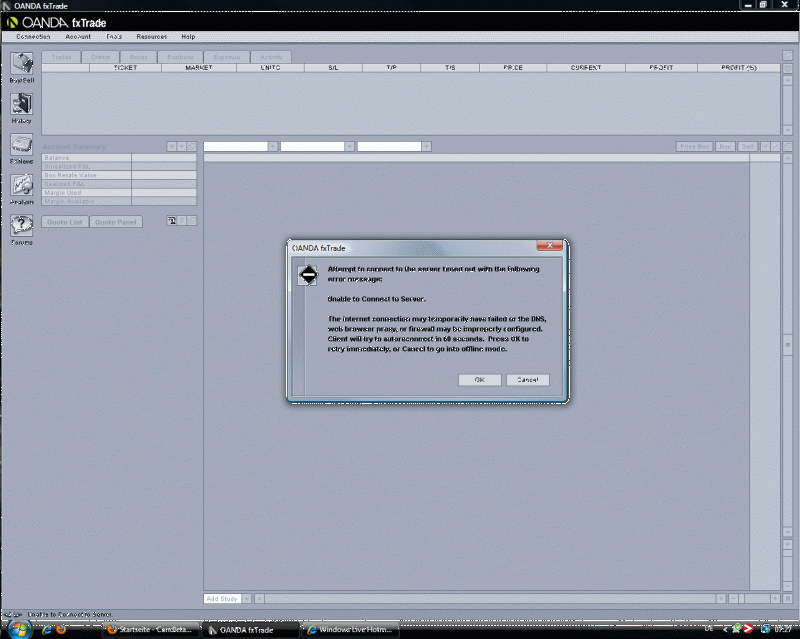 Jungs, habt ihr mal versucht, über euren Browser m.oanda.com/fxtrade aufzurufen, als die Plaform die Meldung zeigte? Ich vermute nein.